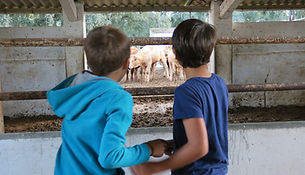 Após uma pequena caminhada até aos abrigos dos animais as crianças são convidadas a interagir com os animais da quinta.
